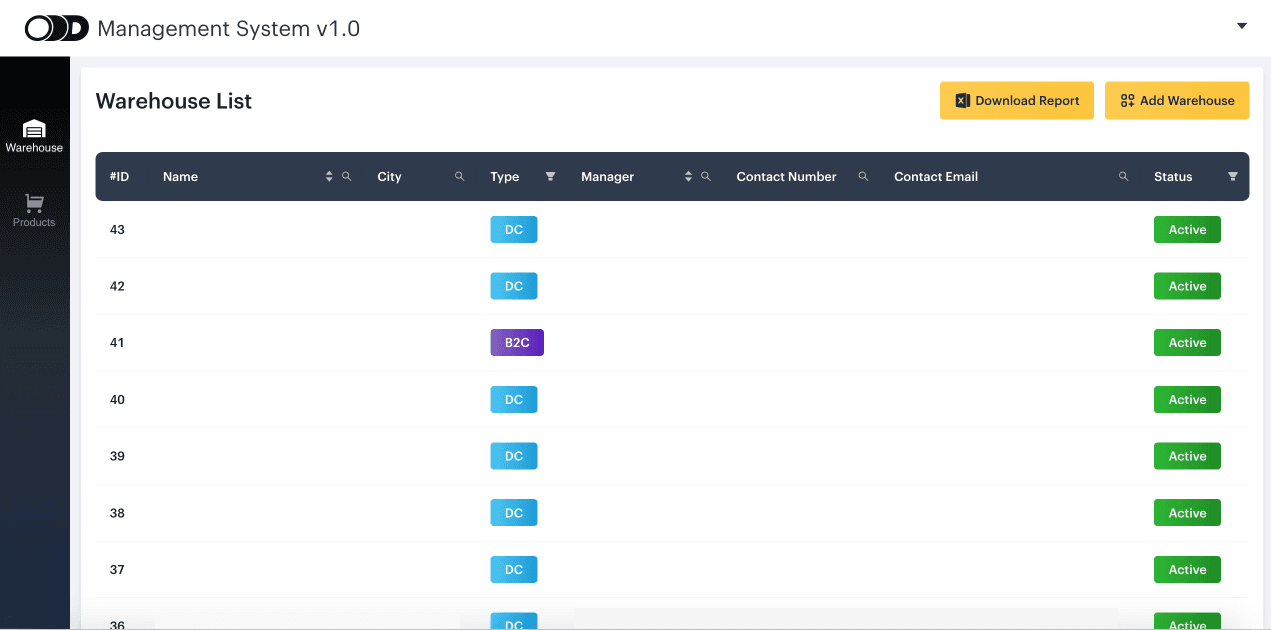 — Warehouse Overview: oversee active warehouse and product count