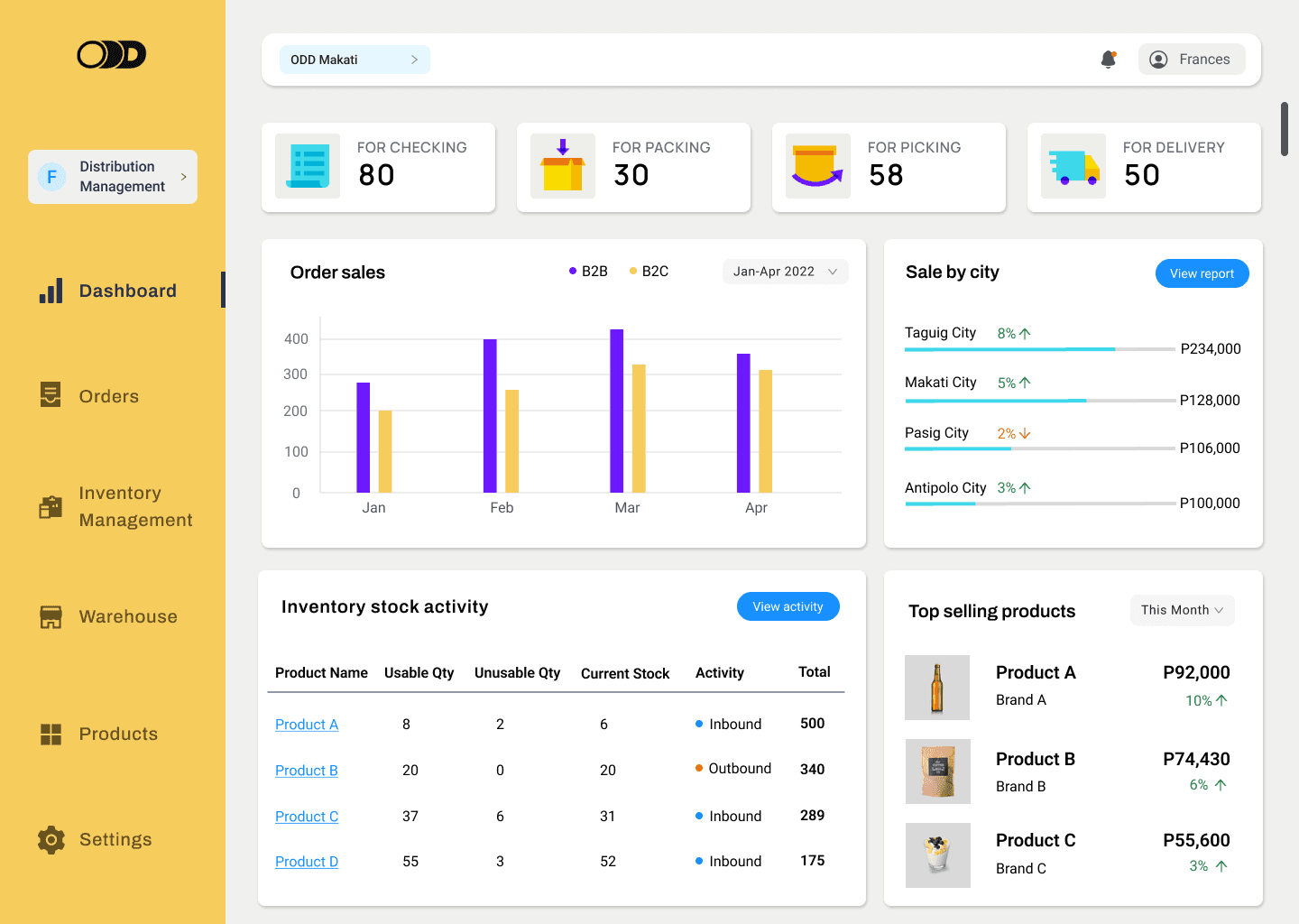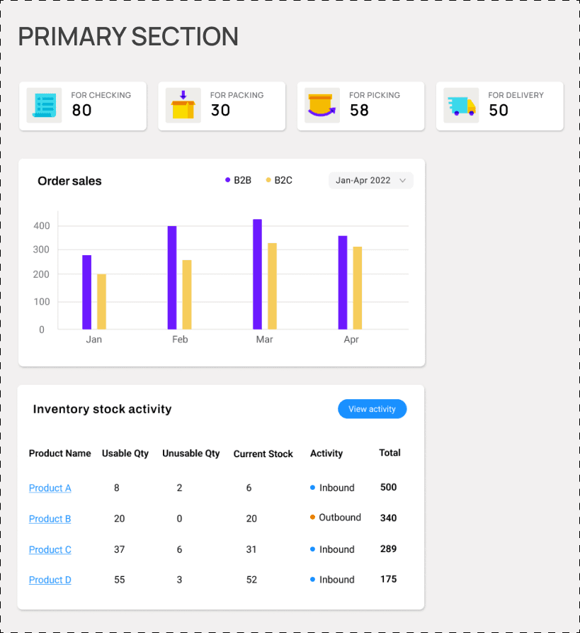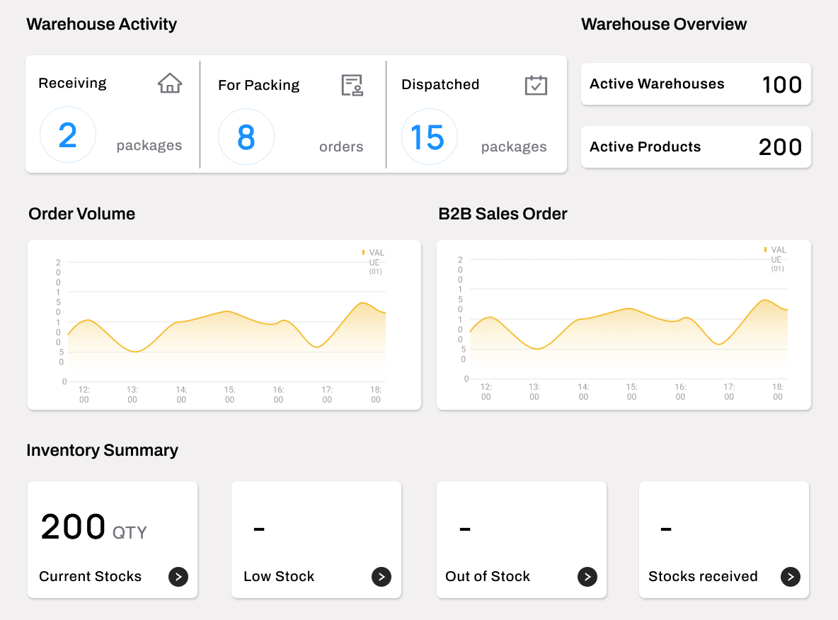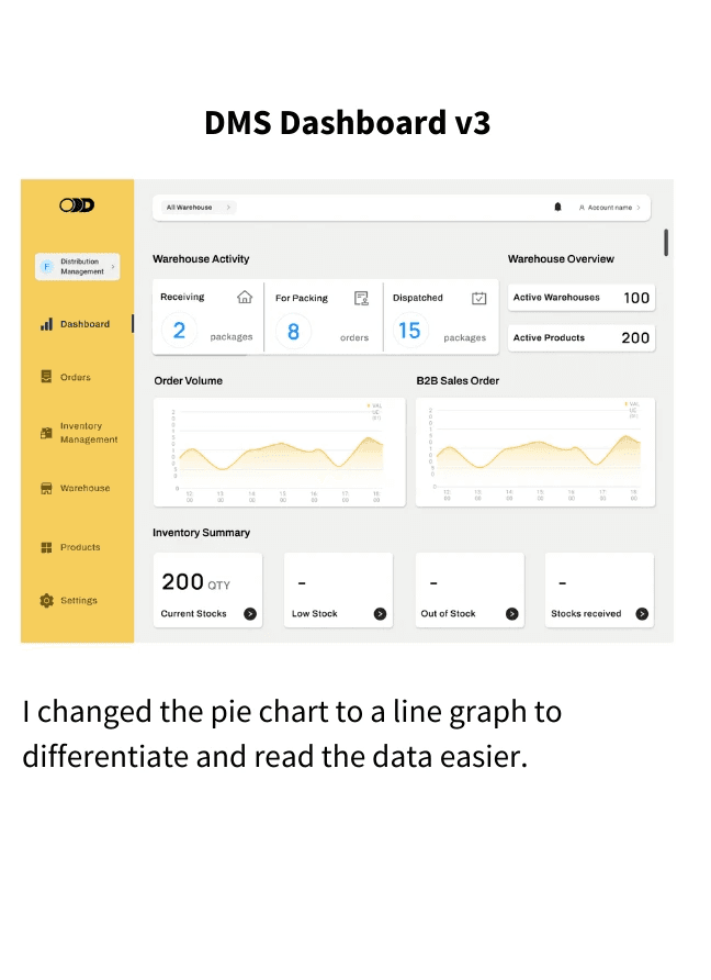 The dashboard was made into a main page where users can check instant information and updates since this would be the first task they need to do in order to fulfill orders or transfer stocks.