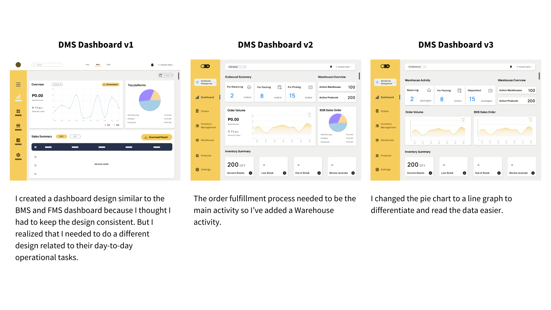 I was tasked to improve one of ODD's management system dashboards. After reviewing the existing dashboards, I decided to focus on the DMS dashboard as it required the most attention when it comes to fulfilling orders.